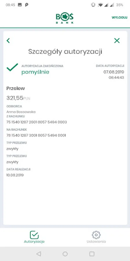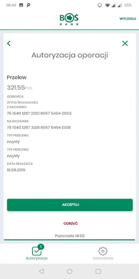 BOŚtoken is an application installed on a mobile device (mobile phone), enabling logging and authorization of operations in BOŚBank24 and iBOSS24 systems. The application is made available by Bank Ochrony Środowiska S.A.
