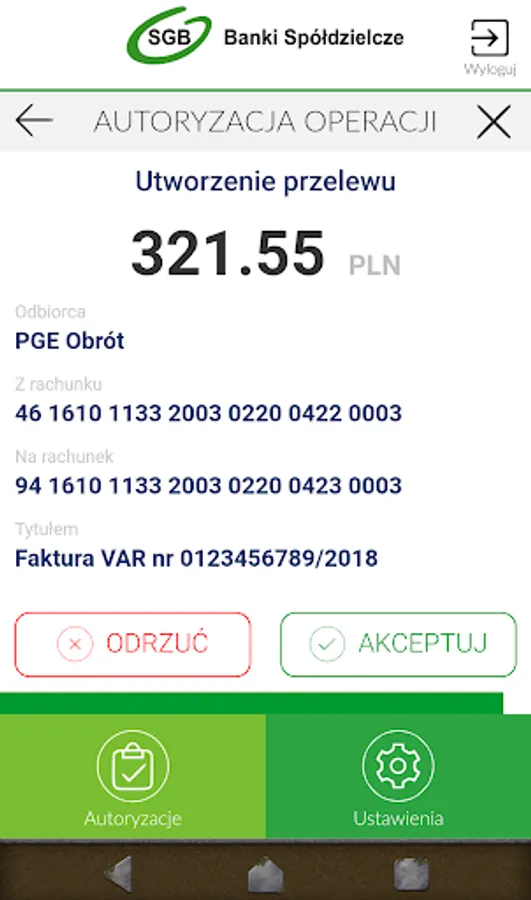 SGB token is an application for users of SGB24 and SGB24 Biznes internet banking - an attractive alternative to popular means of access. Thanks to it, you can easily get to your online banking, and then conveniently and safely confirm all your actions. It's simple: you get a push notification with a short title of the ordered operation and you accept.