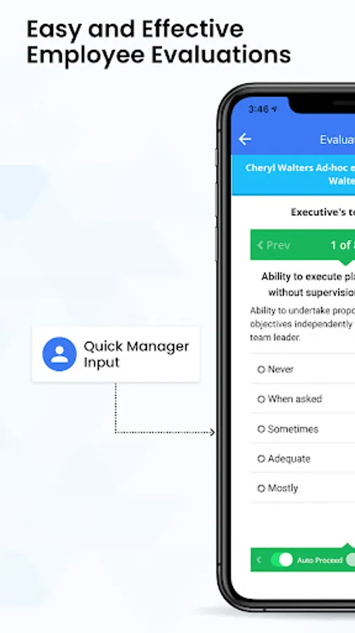 AssessTEAM delivers clear actionable reporting to employees so they can get better at their jobs without waiting for the next appraisal cycle. Evaluations are delivered on the mobile app as a push notification, they can be completed within the app in seconds.