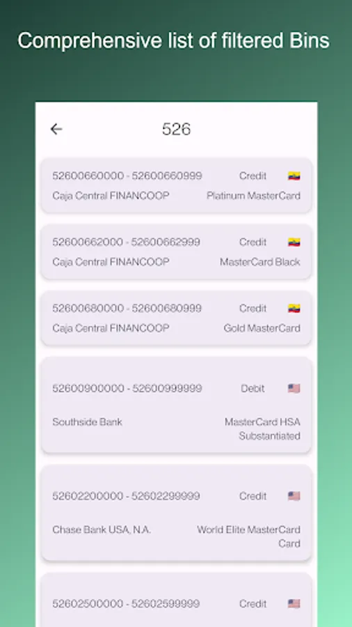 Our app features a comprehensive database of BIN numbers for all major credit and debit card issuers, making it easy to quickly identify the issuer of any card. You can also search for BIN numbers by issuer name or card type.