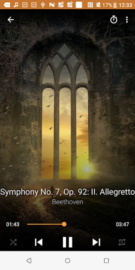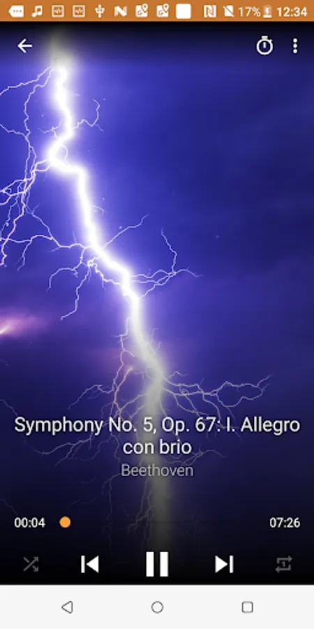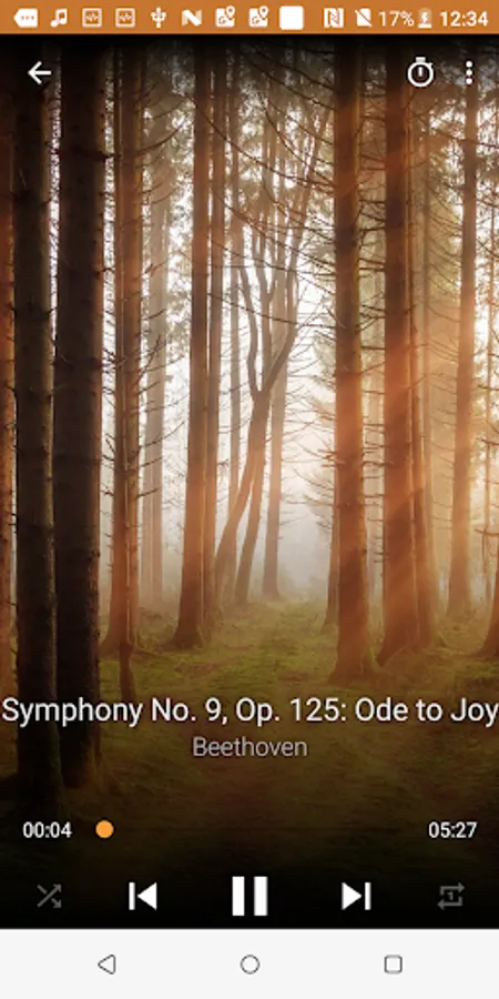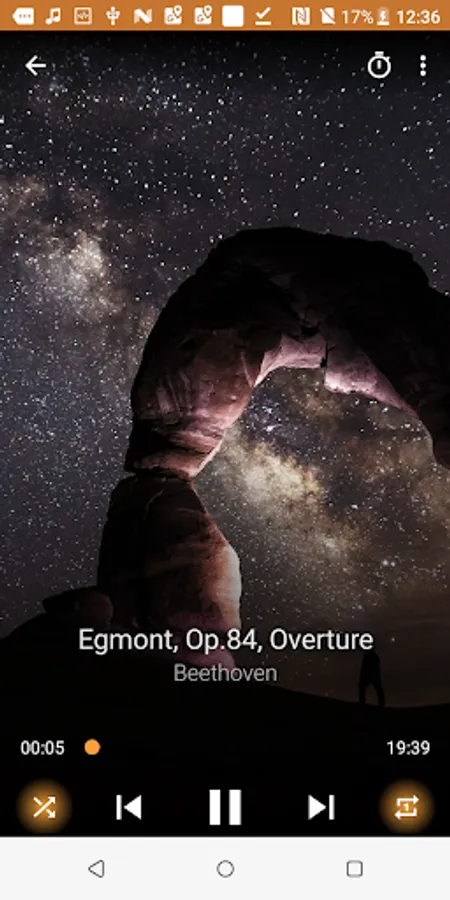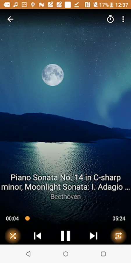 The app has timer, you can set it and go to sleep, the music will be stopped automatically. The app has shuffle mode to play music in random order and repeat mode to play the same song again automatically.