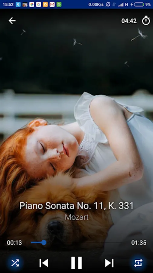 The app has timer, you can set it and go to sleep, the music will be stopped automatically. The app has shuffle mode to play music in random order and repeat mode to play the same song again automatically.