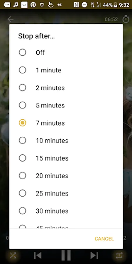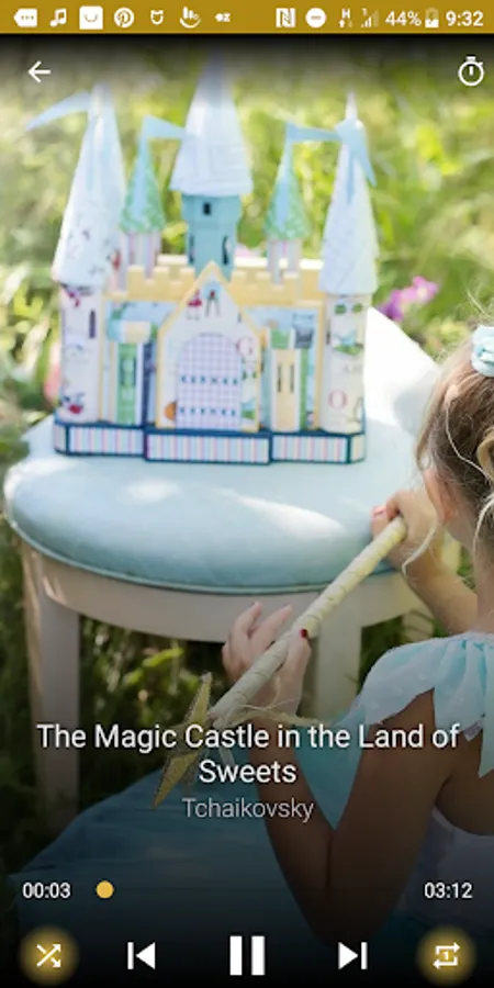 The app has timer, you can set it and go to sleep, the music will be stopped automatically. The app has shuffle mode to play music in random order and repeat mode to play the same song again automatically.