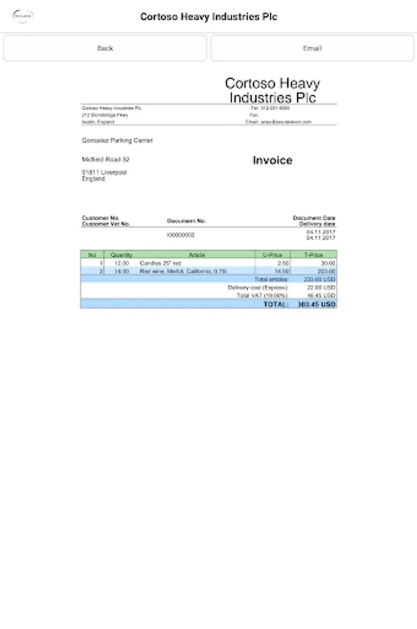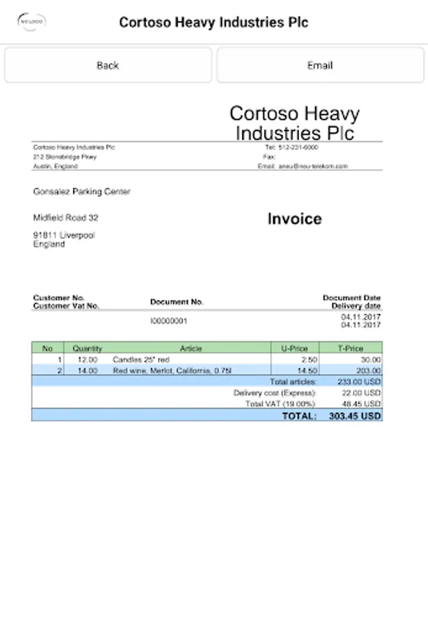 You can add your invoice items into an article database so that creating an invoice becomes even faster. Manage your customers and even multiple contacts for that same customer. Also, you have the ability to create text blocks that you use frequently so you can add them into your documents - such as warranty limitations or references to your terms and conditions.