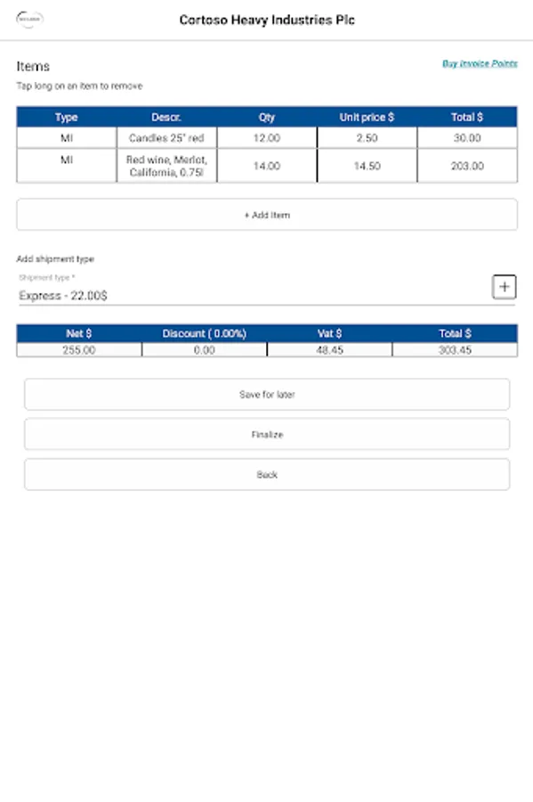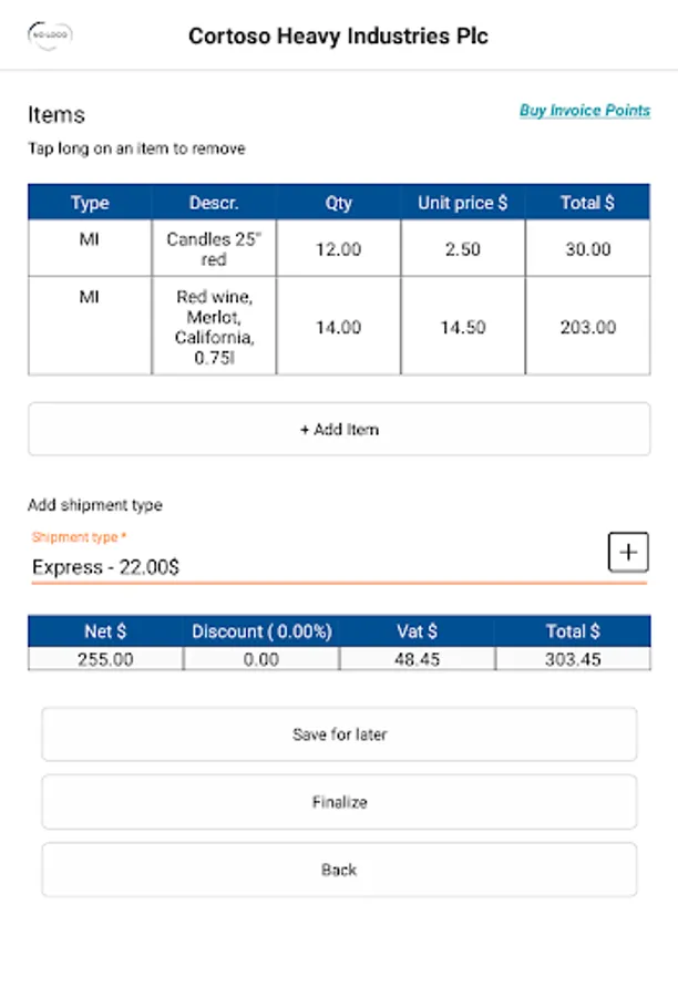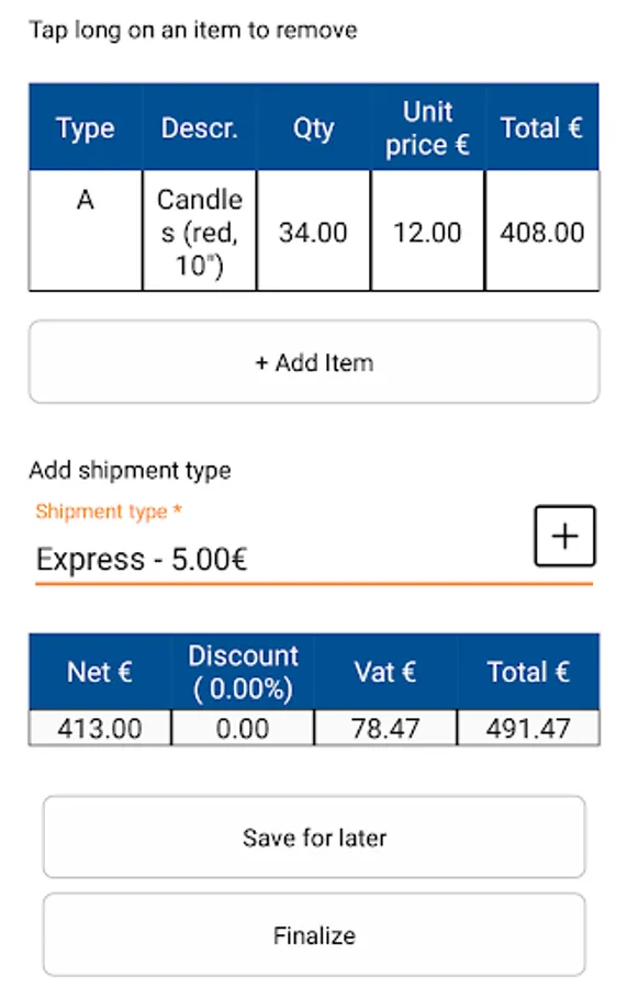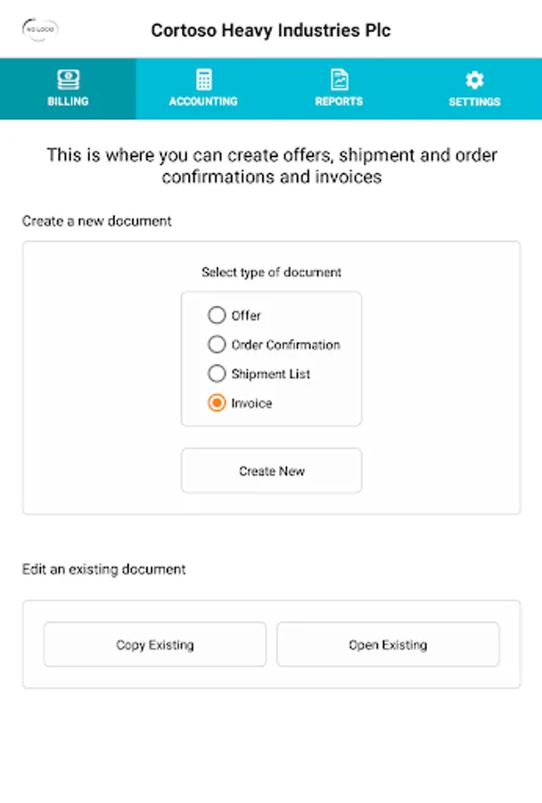 The app covers the entire lifecycle of your billing tasks, including quotations and proposals, shipment lists, invoices and finally credit notes and cancellations.
