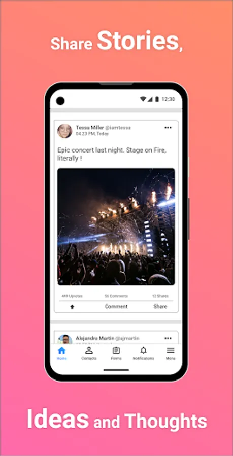 Profiles: You can have separate profiles for both your Social and Work Network (You organisation should have Whatsay Business Subscription for this feature). Edit your profile as you please.