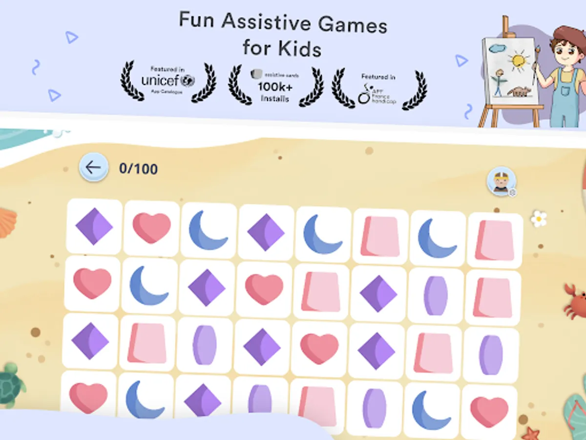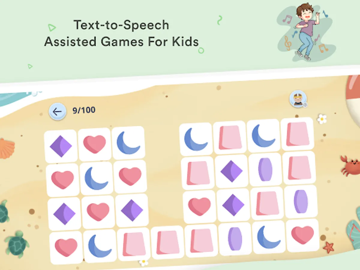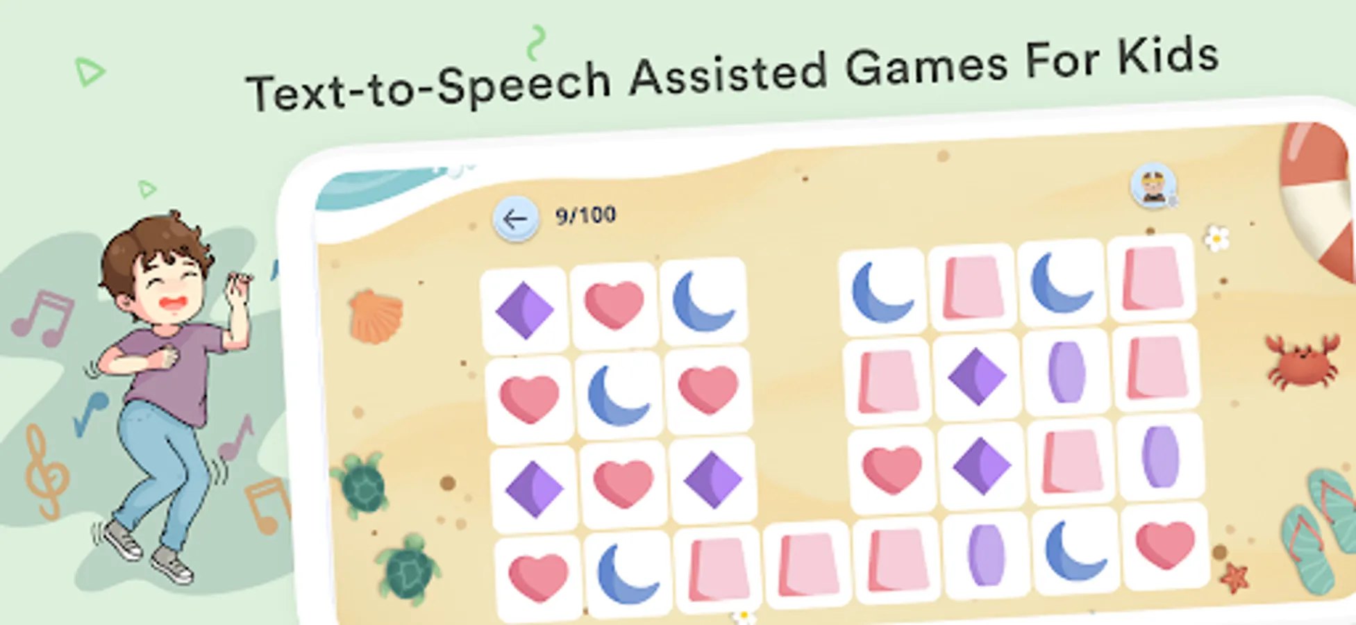 assistive game, cognitive learning, autism, motor skills, cognitive skills, accessibility, tts support