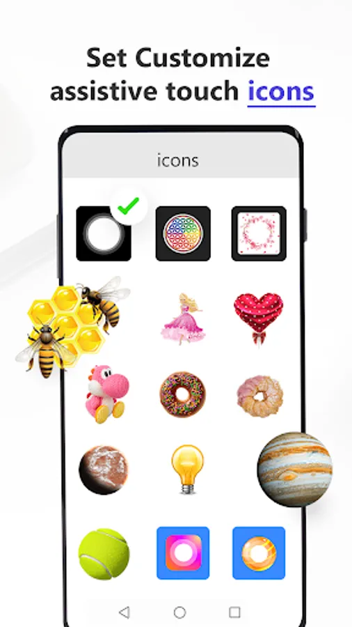 Assistive Touch: Screenshot app include many animated icon customizations.