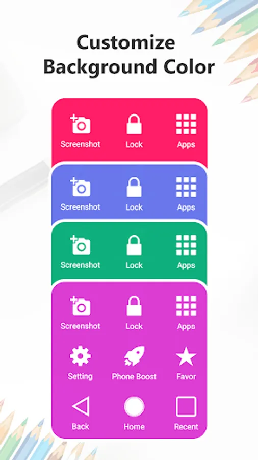 The interface of tools display can be customized too. In-app, there are many pallets available of solid colors you can choose your assistive touch tool display background as well.
