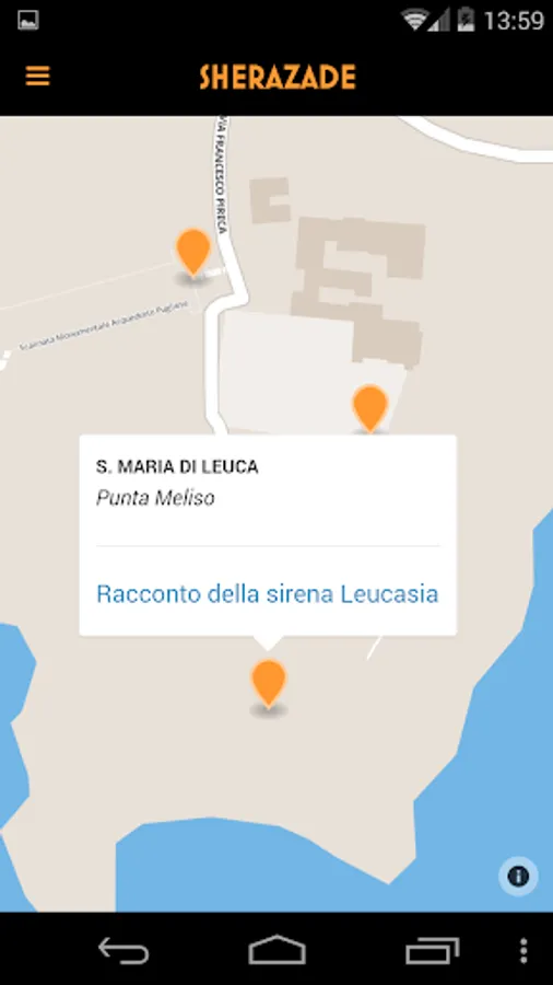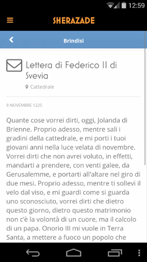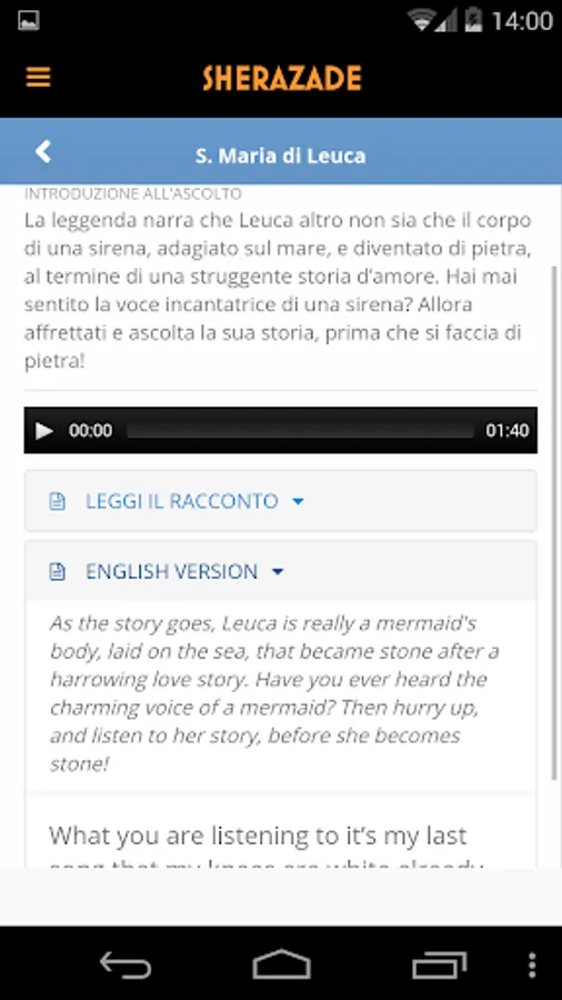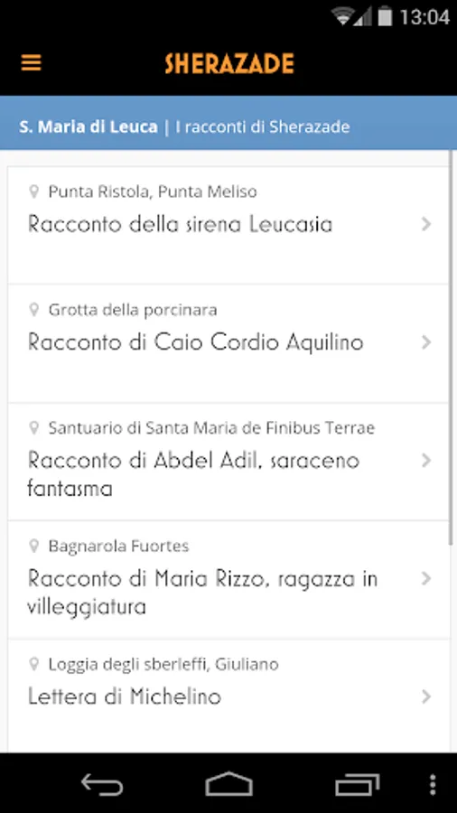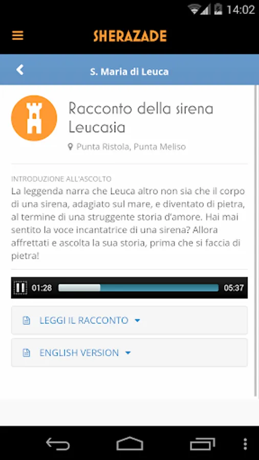 Just put your headphones on, press play and let Scheherazade begins to tell, as he looks around, and listen to stories directly from the voice of the characters, real or imaginary, that have lived there: the king and peasants, monks and warriors, sirens and tarantate ...