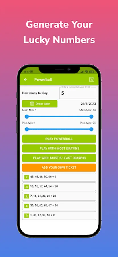Generate tickets using entirely random numbers, tap into our unique feature that uses the most frequently drawn numbers, or craft a blend of the most and least drawn numbers for a balanced approach. If you have favorite numbers, you can also manually create your own tickets. Save your selections and effortlessly compare them with winning numbers later!