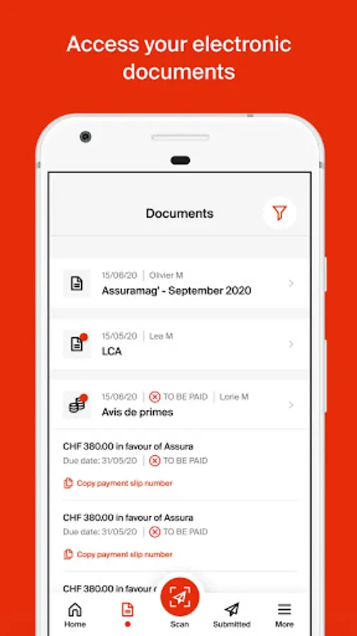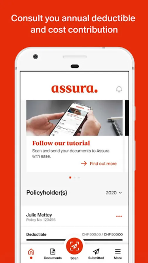 You can create your account directly in the Assura app. This account also allows you to access the Customer Portal e-assura.ch