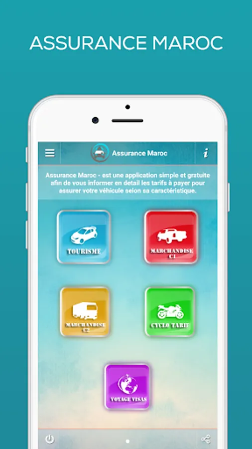 Insurance Morocco - is a simple and free application to inform you in detail the tariffs to pay to ensure your vehicle according to its characteristic.