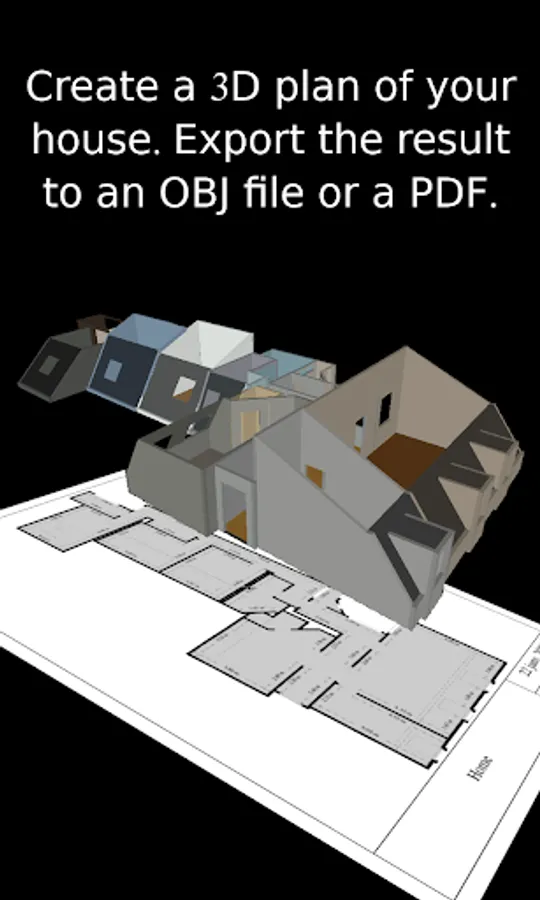 The app can generate 2D floor plans and export them in a PDF file. This PDF report also contains detailed information about dimensions, surfaces and volume of each room of the floor plan. You can even share your 3D model with a contractor, your family or friends so that they could see it in augmented reality with their own Wodomo 3D app.