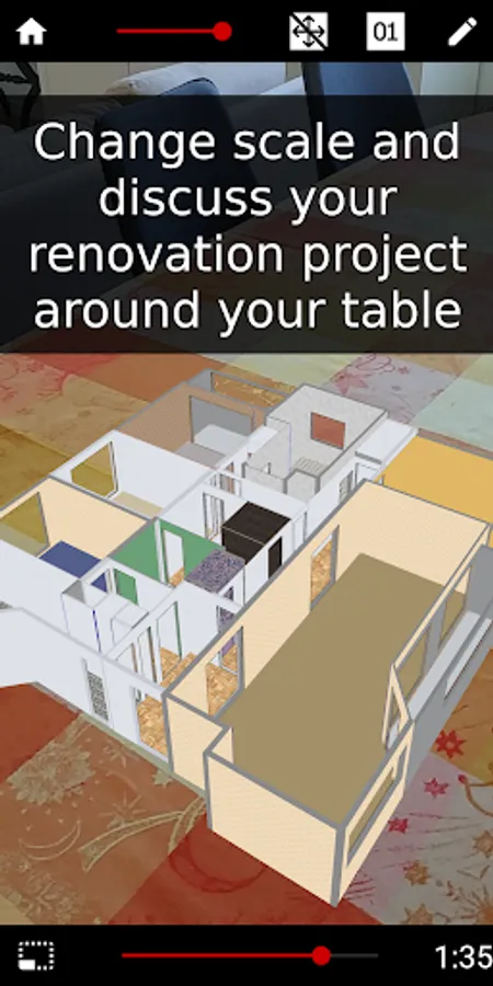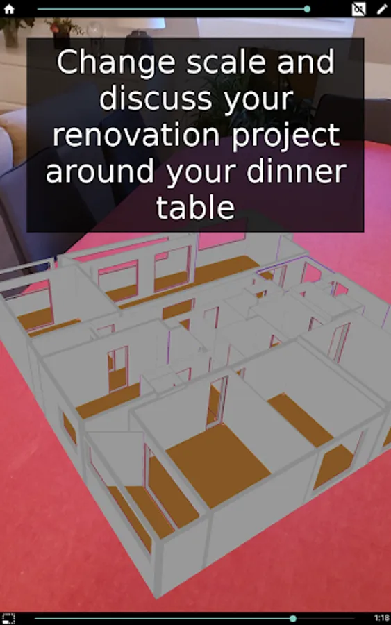 Thanks to Augmented Reality, you have an immersive experience of what the result could be. You move around and see the result on your device screen, from all possible angles. You will almost “feel” how the place would look like after the renovation.