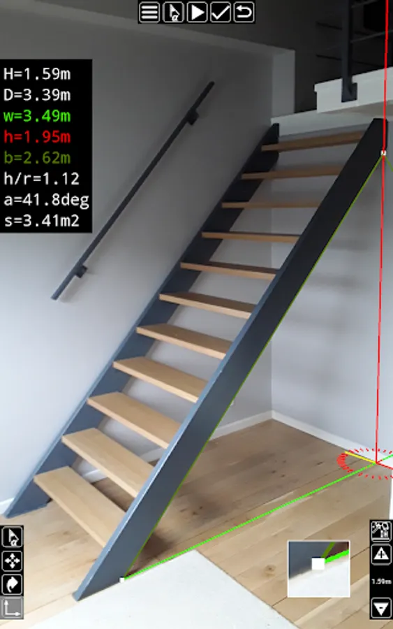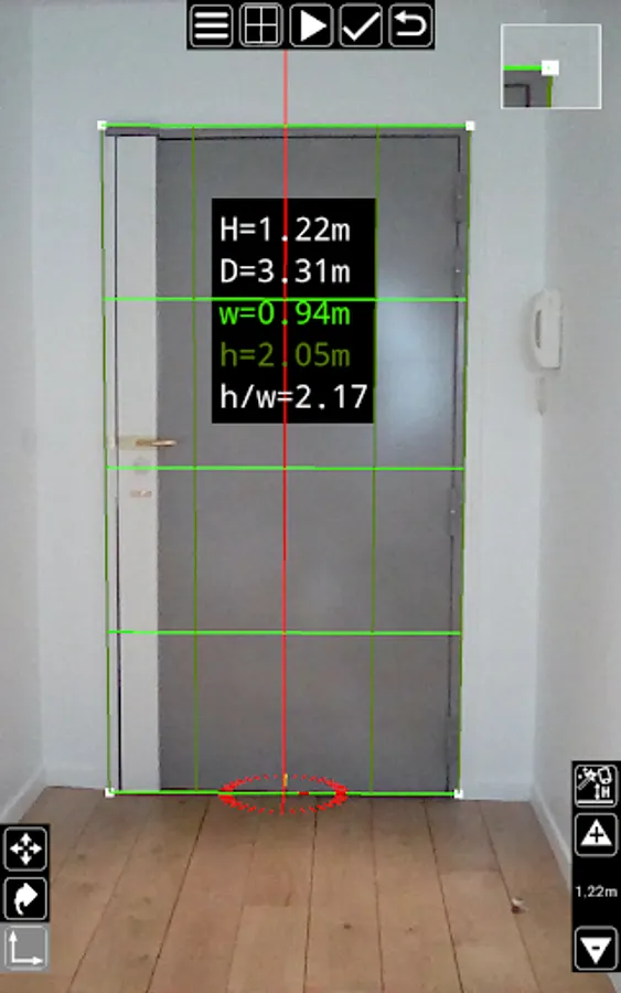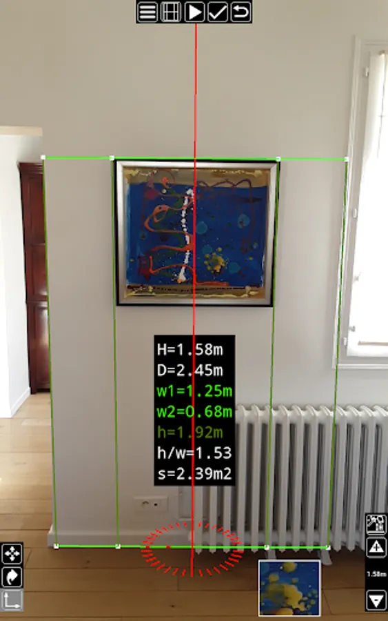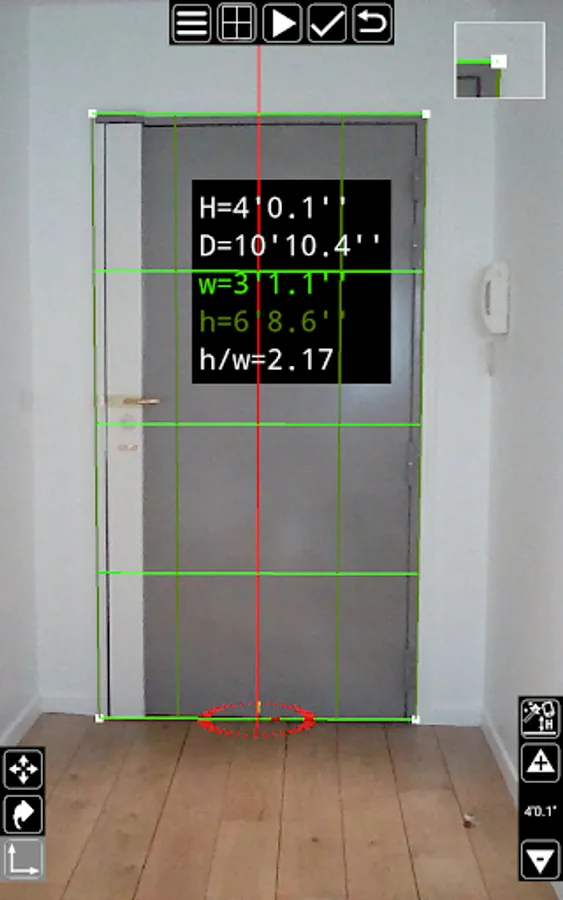 3D Measurement App / Plumb-bob is an augmented reality (AR) app which displays a virtual frame on top of the camera image. This frame remains vertical regardless of the orientation of your device. The frame dimensions are displayed in real time.