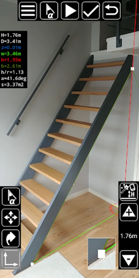 Thanks to 3D Measurement App / Plumb-bob, you can verify vertical and horizontal alignments, measure distances and measure angles.