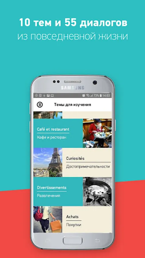 Using the app, you can quickly improve the comprehension skills of the French language by ear and quickly learn conversational French.