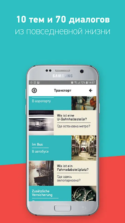 Using the app, you can quickly improve the skills of understanding a foreign language listening and quickly learn conversational German.