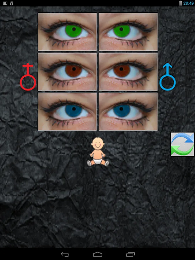You need select Mother and Father color of eyes and application will give you possibilities of baby's eyes color.