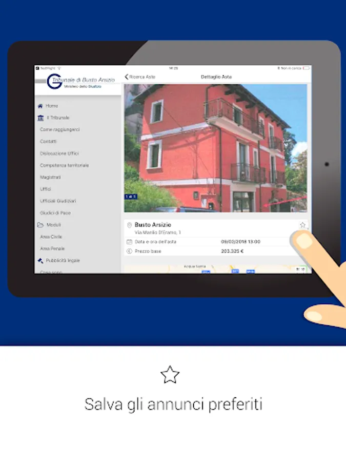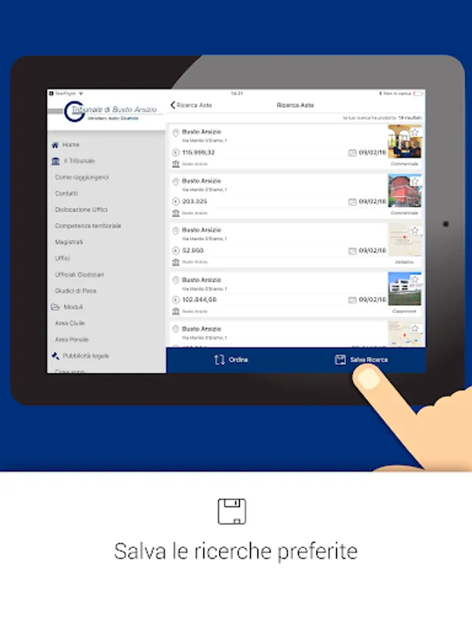 The official app of the Court of Busto Arsizio allows you to consult in real time all the news published by the judiciary, to find forms, see phone numbers and interact with targeted services to citizens. You can also consult the judicial sales of the Tribunal and locate properties auctioned through a powerful search engine or simply taking advantage of the GPS of your smartphone.