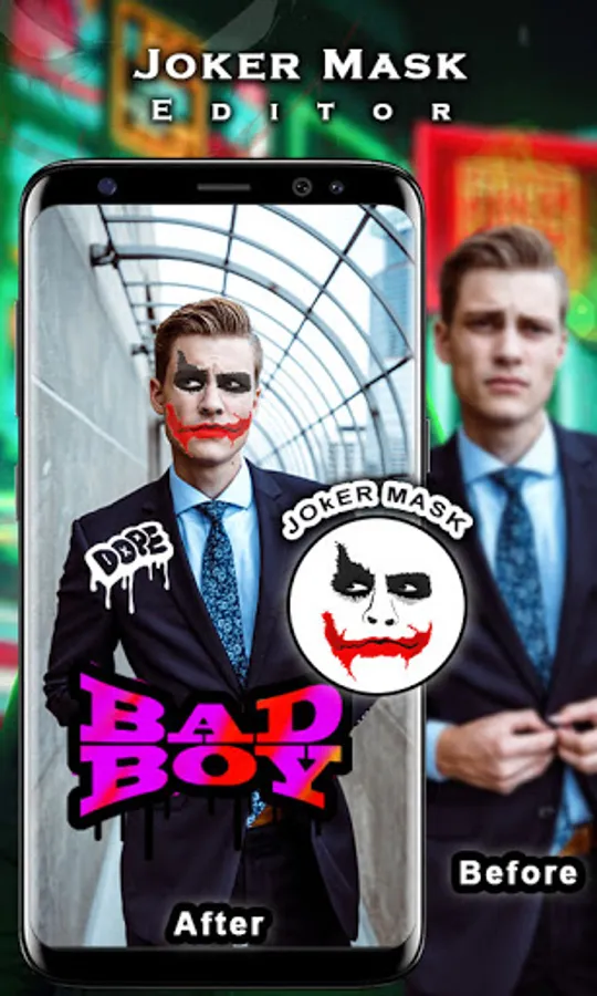 11. Joker Face Mask: Edit your Pictures with joker face photo editor.