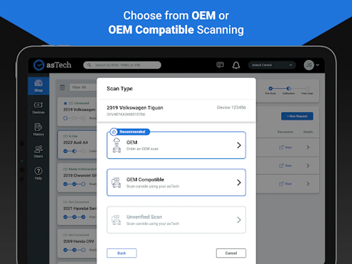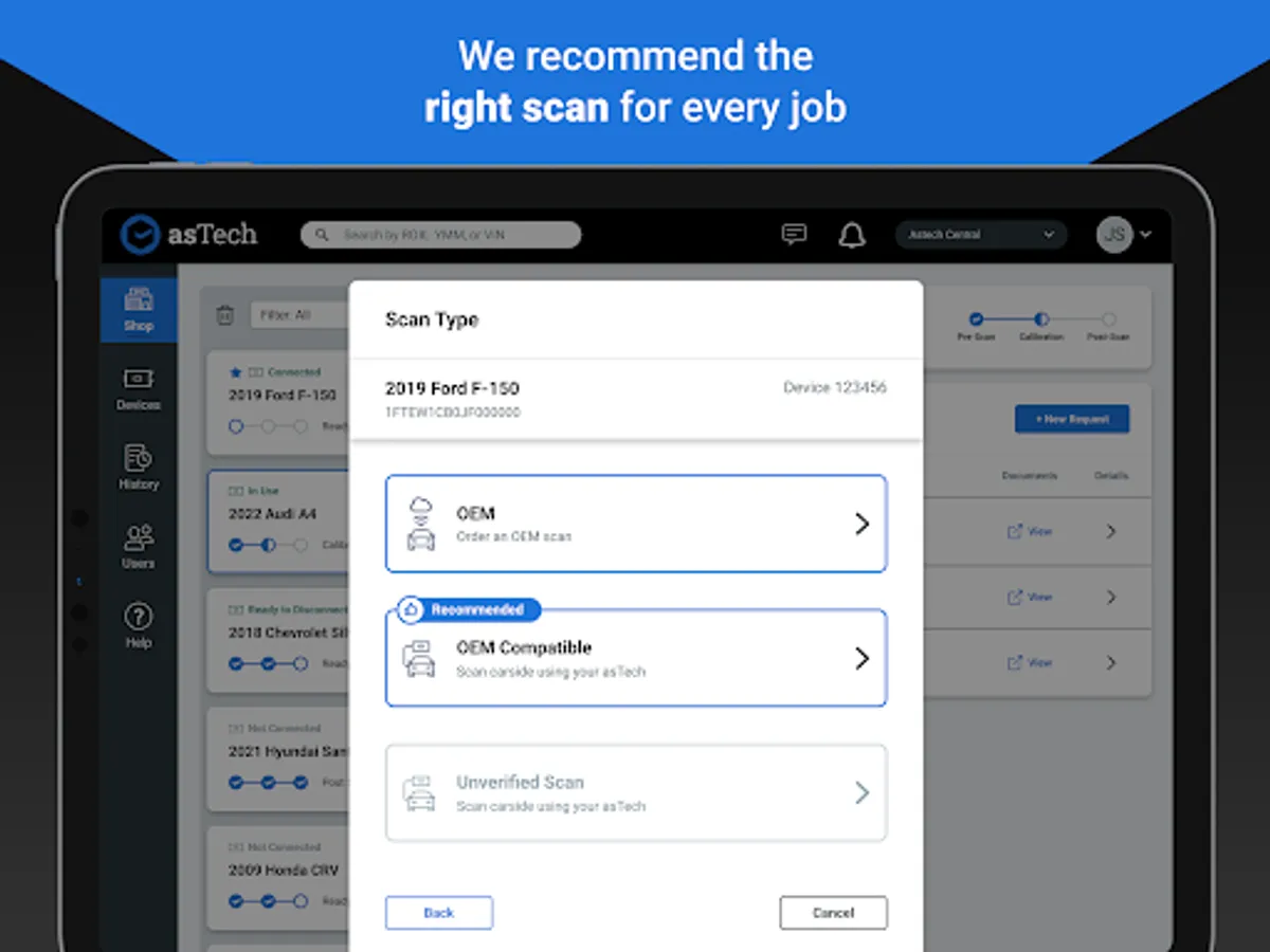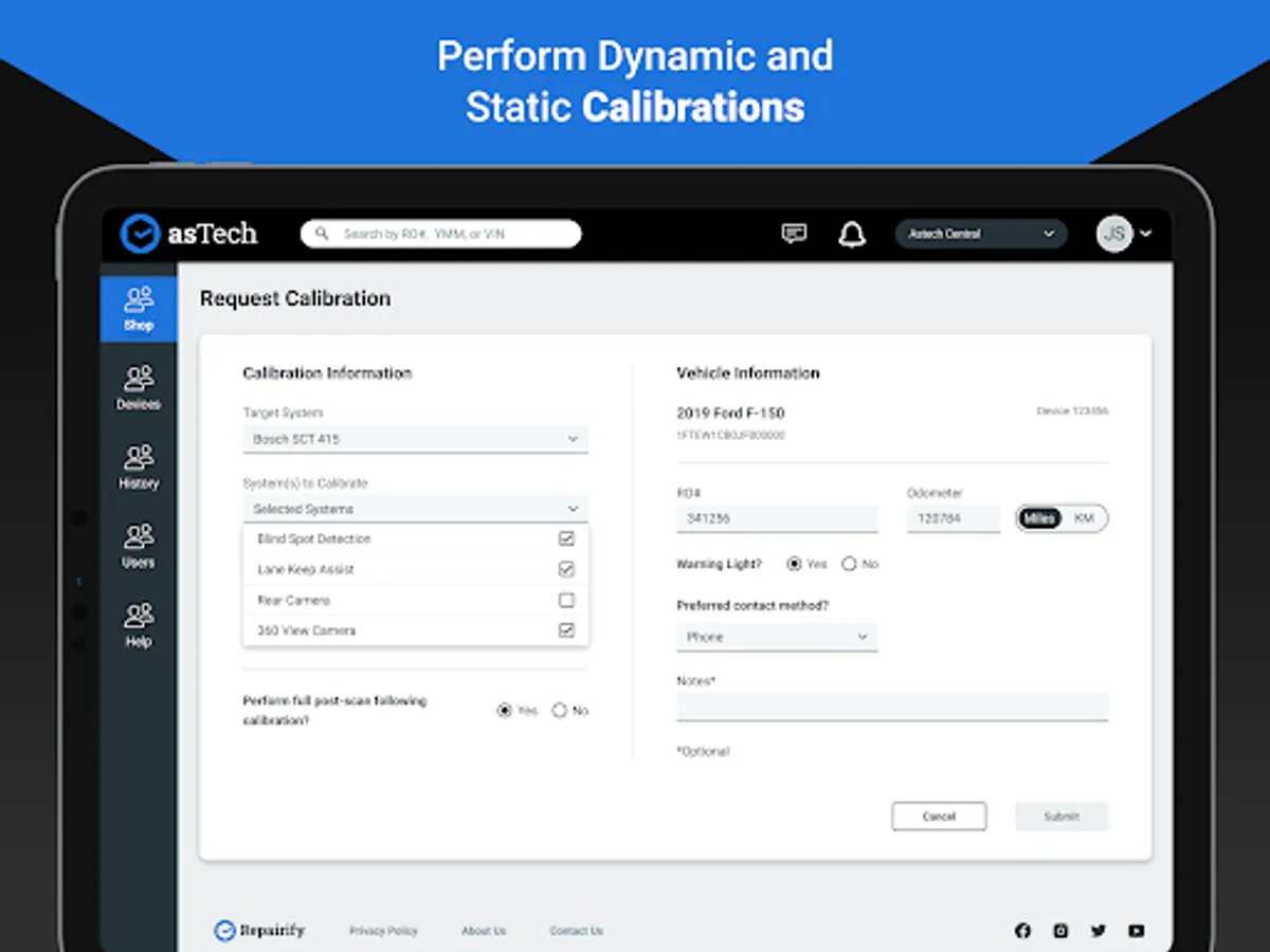 Let us help you improve your cycle time with our patented scanning tool and staff of experienced master technicians. Now access to OEM scans and expert collision diagnostics goes with you wherever you go. View your scan reports, submit new scan requests and review important documents in the asTech Connect app. Our team provides cutting-edge, expert diagnostics to provide safe and accurate repairs. Visit www.asTech.com, or call (888) 486-1166 to learn more about remote diagnostics with the asTech device by asTech, a Repairify company.