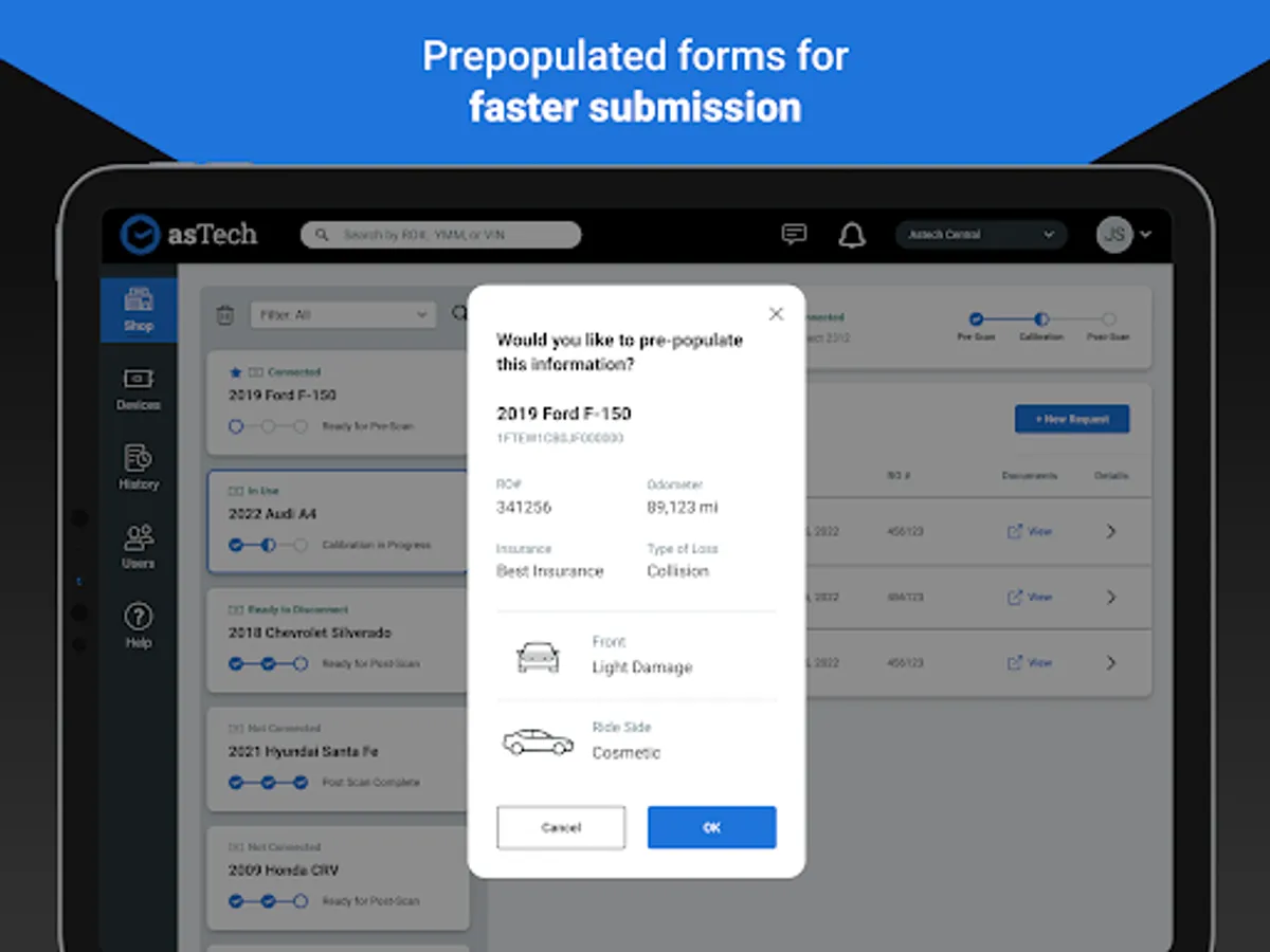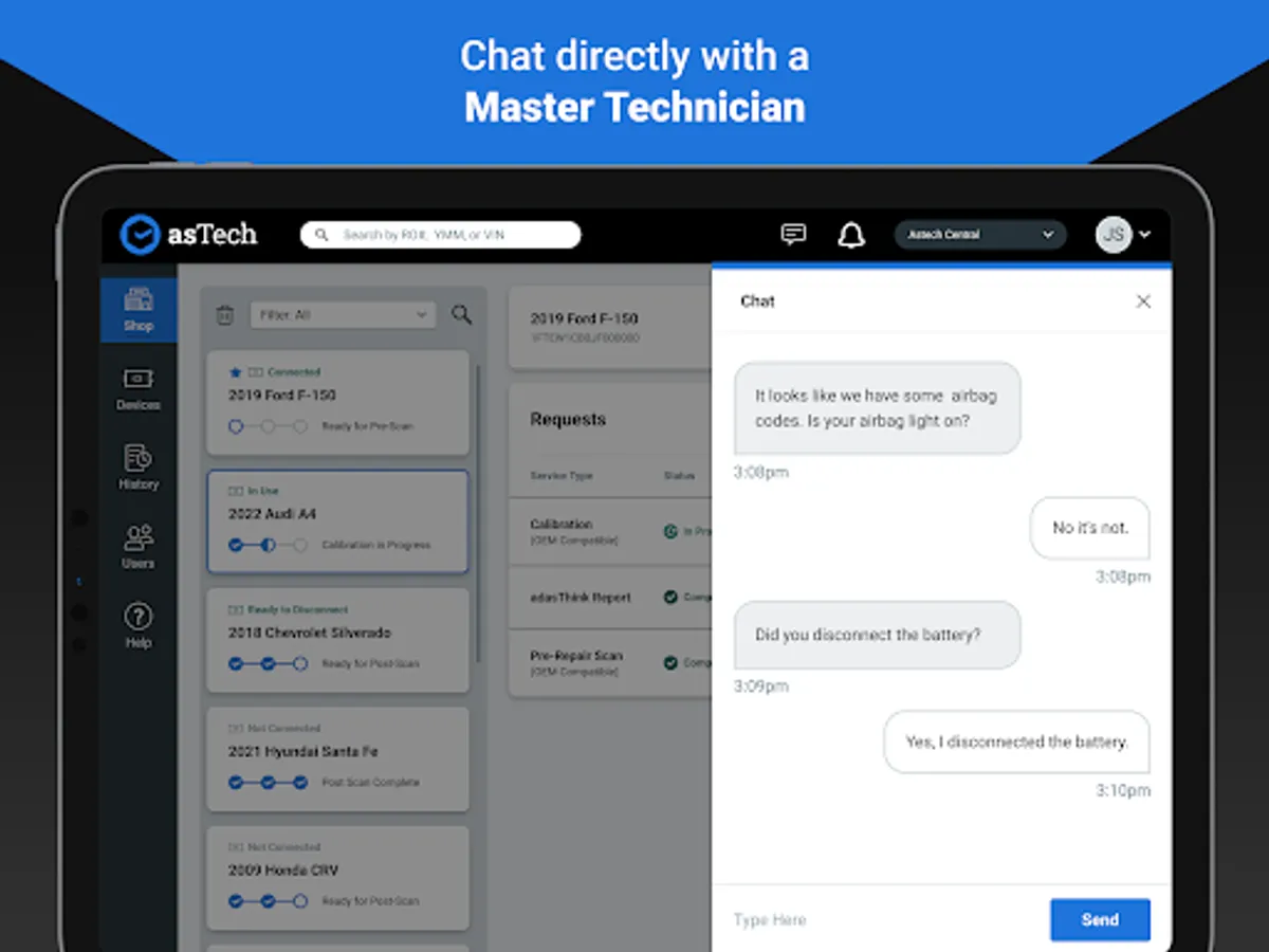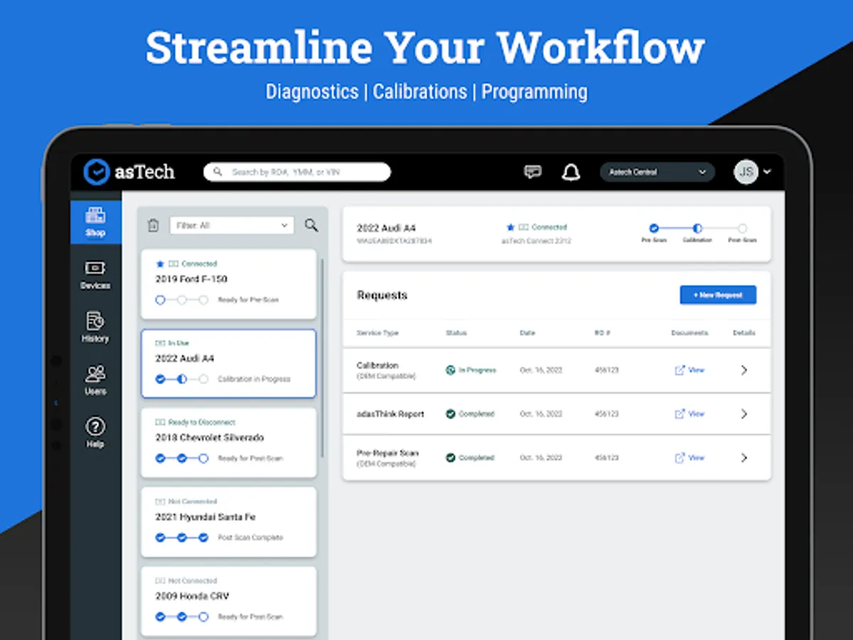 asTech®, the leader in remote diagnostic solutions for automotive shops, brings you an innovative new way to make access to remote diagnostics easier than ever. The new, asTech Connect app takes the convenience and utility of the asTech remote scanning device to the next level. With a completely redesigned user interface users can easily see the status of their requests and devices in one screen, and new dynamic submission forms have less fields and more prepopulated data to make submissions faster than ever before.