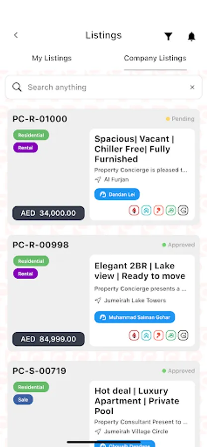 CRM Mobile application for Property Concierge to manage listings, leads, viewings, contacts
