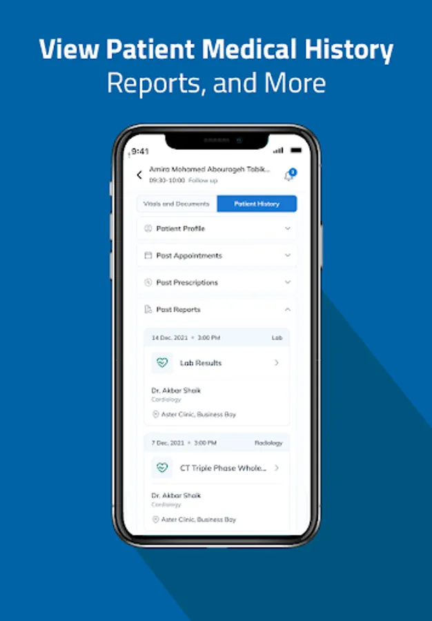 The app makes it possible to deliver a smooth consultation experience by keeping the doctors well-informed about their patients. The myAster Doctor app is available for all Aster Clinic and Aster Hospital doctors.