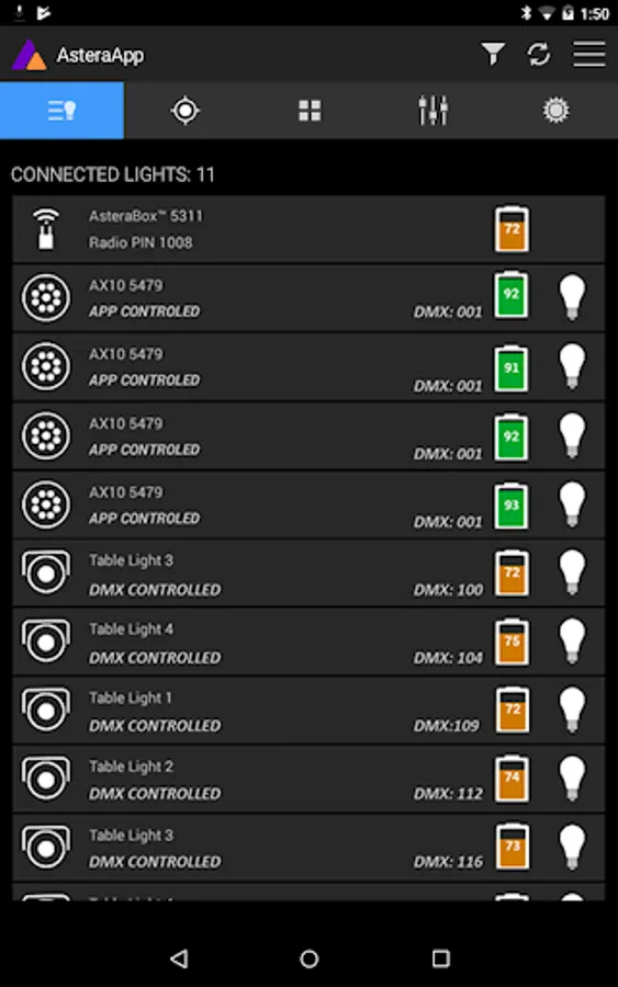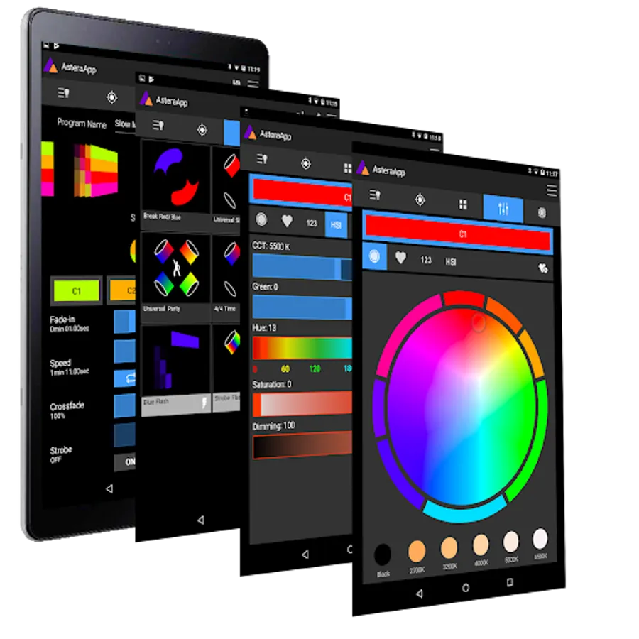 The Astera App offers intuitive and fast control of complex lighting setups with fully customizable programs and effects. It is designed to work seamlessly with other control methods such as wireless DMX. On top of this, the app offers numerous helpful tools to get the most out of your Astera lights and save time whenever you use them.