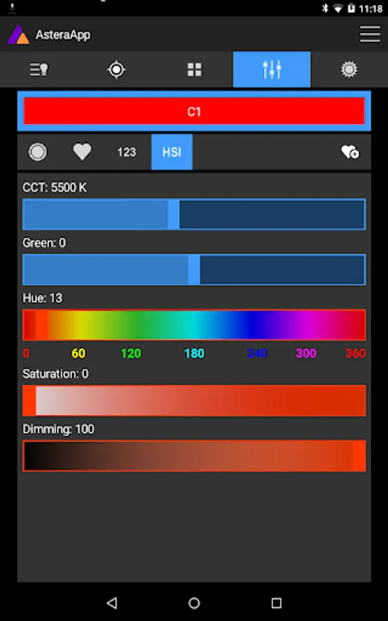 The AsteraApp offers several ways to select colors such as color-wheel, Filter Gels, color temperature, HSI, RGB and CIE 1931. Thanks to Astera’s ultra-precise Truecolor calibration, Astera fixtures can display the precise color that was selected.