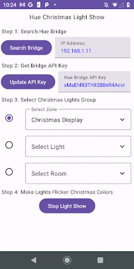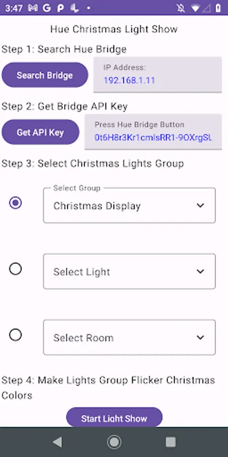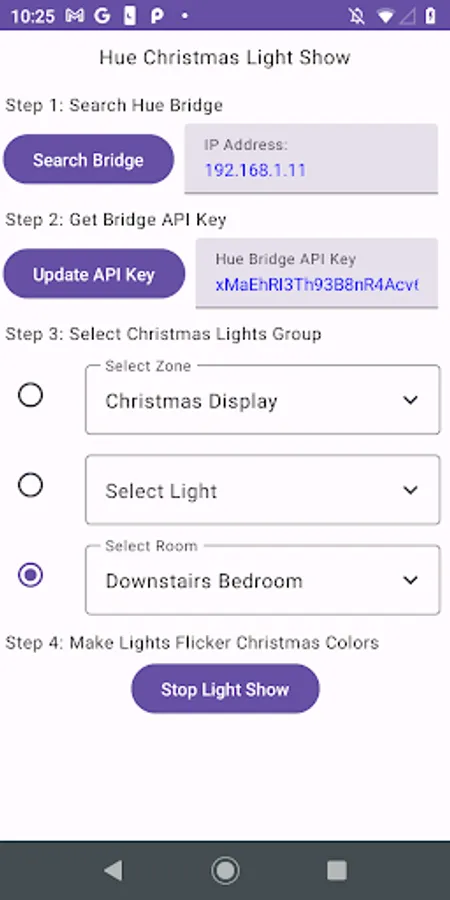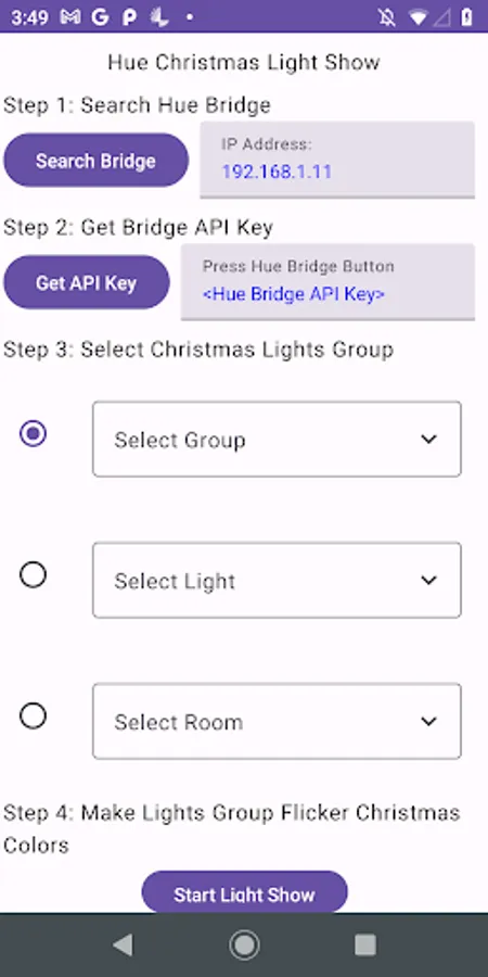 This app continuously changes the colors of your Phillips Hue lights to create a light show for Christmas or other holidays. It uses holiday themed colors.