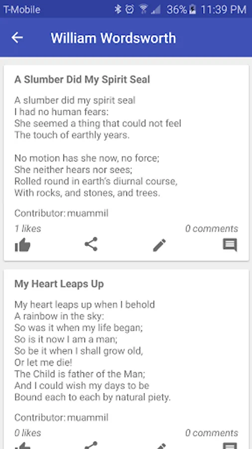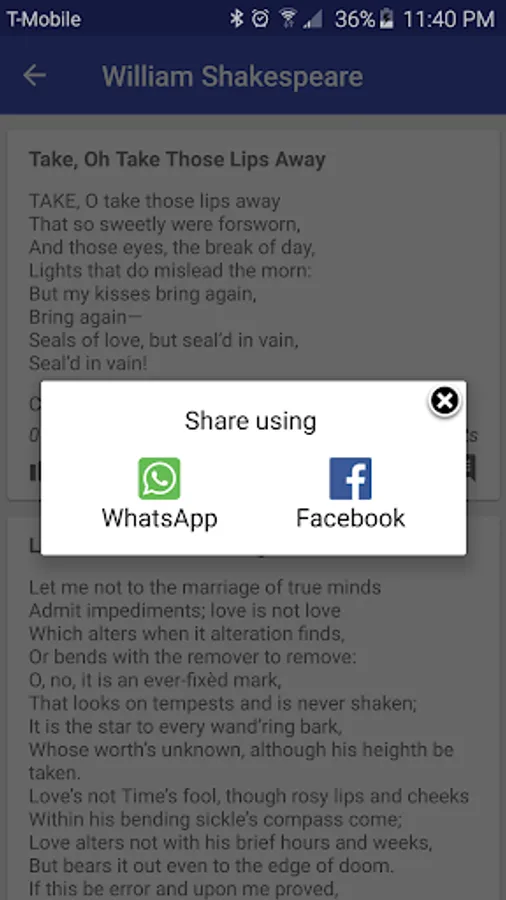 Via sharing options you can share your favourite poem with another app user as well as your friends.