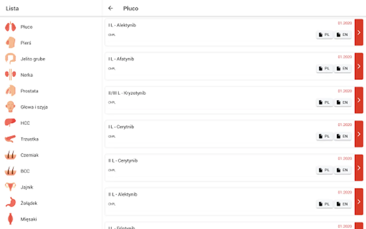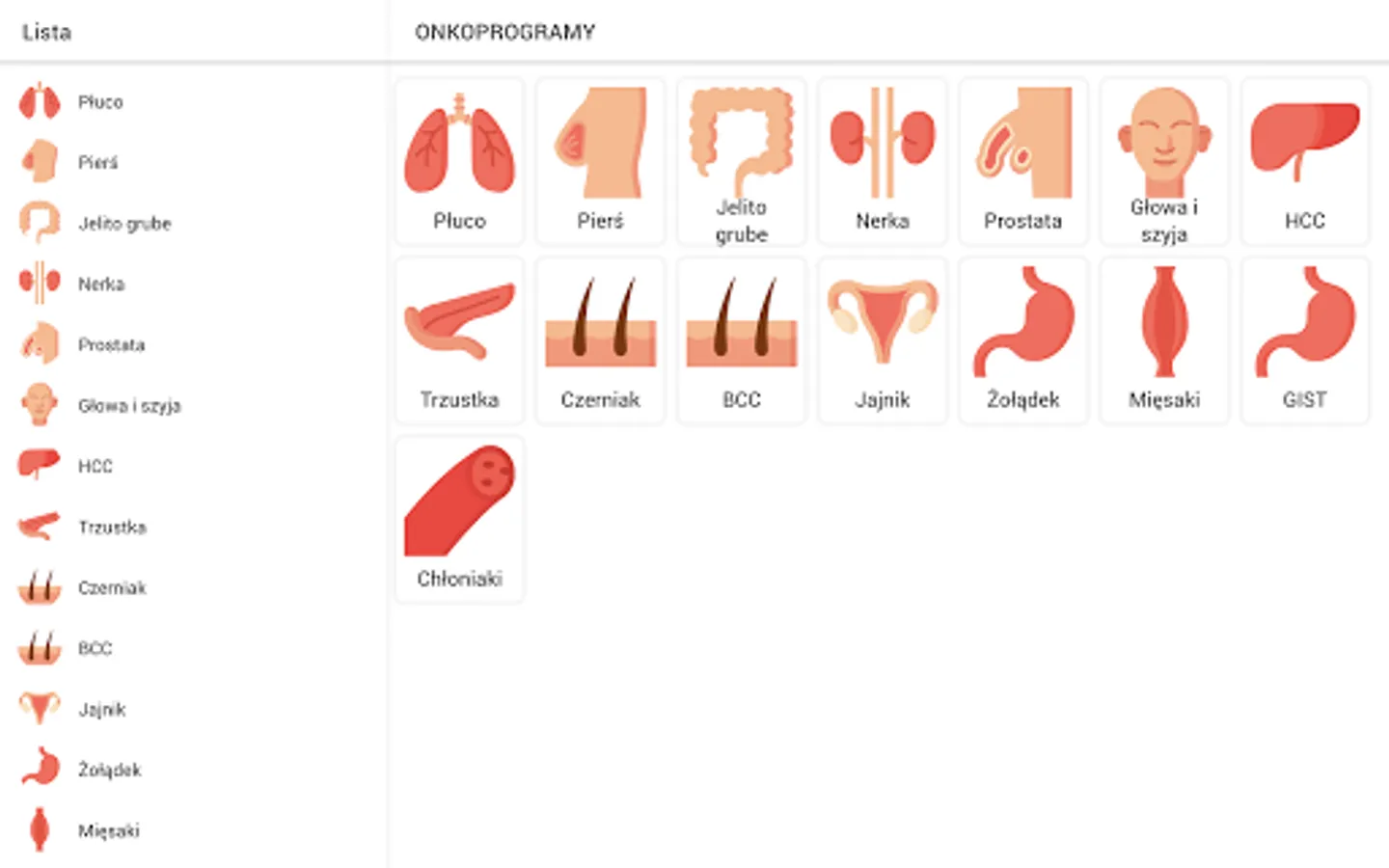 The ONKOprograms application is a tool to support a doctor in everyday practice in qualifying for drug programs and in guiding patients with oncological diseases. The user receives access to the current content of the programs. It is also possible to compare individual therapies and archival versions, as well as generate a qualification card. The application is constantly updated in accordance with the current announcement of the Minister of Health on the list of reimbursed drugs, foodstuffs for particular nutritional uses and medical devices.