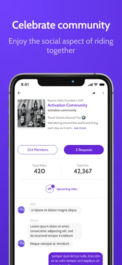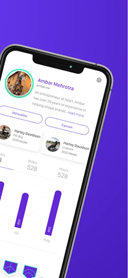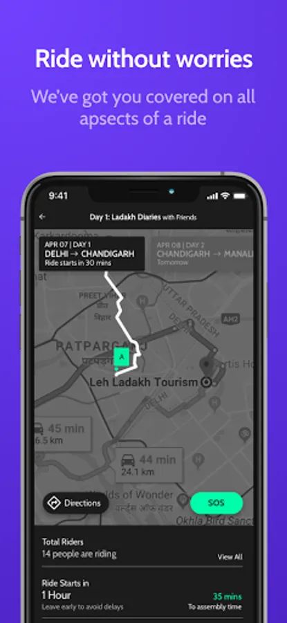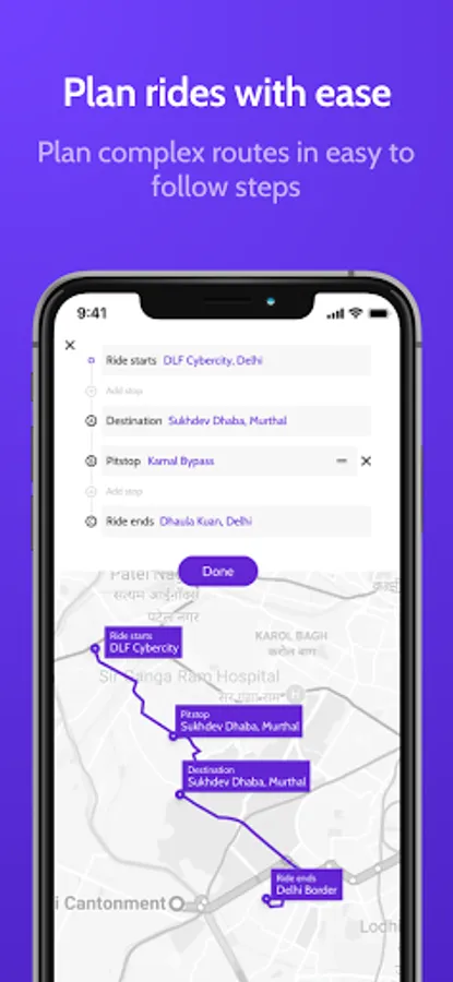 iii) share gorgeous self-generated ride cards with riding routes, pit-stops, weather, confirmed riders, Kms, ride duration and much more.