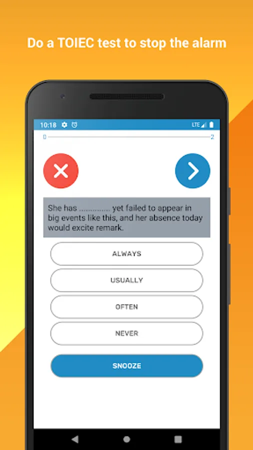 • TOIEC quiz: turning off alarm, you need to answer some test in TOIEC.