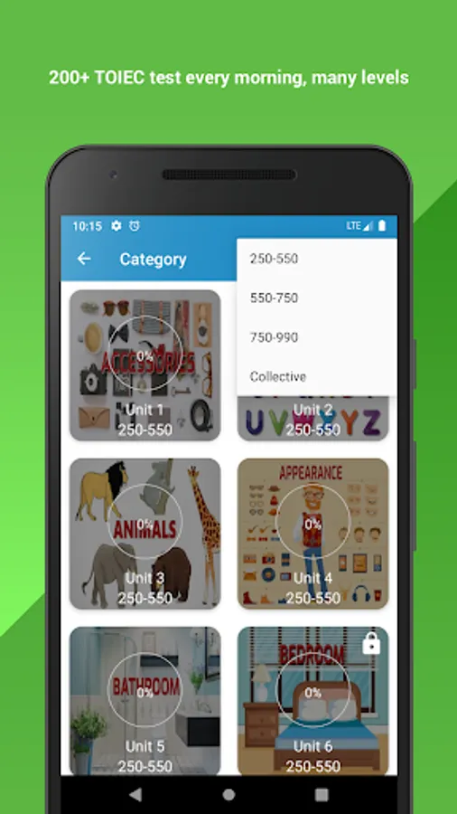 • Vocabulary: you need to pass some questions (image) along with specific level.