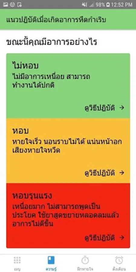 Patients can assess symptoms and manage primary asthma attacks on their own.