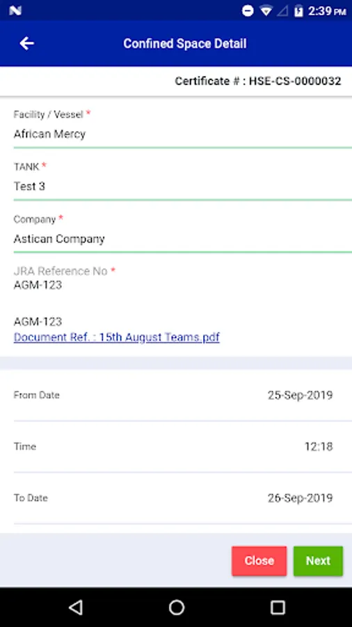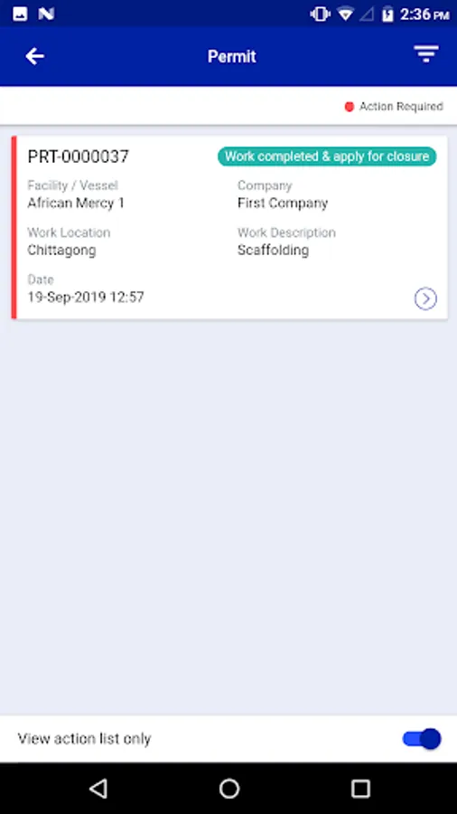 - The appropriate authority gets a visual progress bar indicating for a particular Permit/Isolation Certificate/Confined Space Certificate.