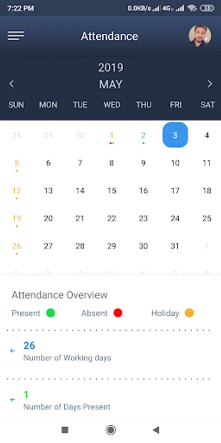 2. The Attendance of the ward can be seen via app with Daily/Weekly/Monthly records on their fingertip with calendar view.