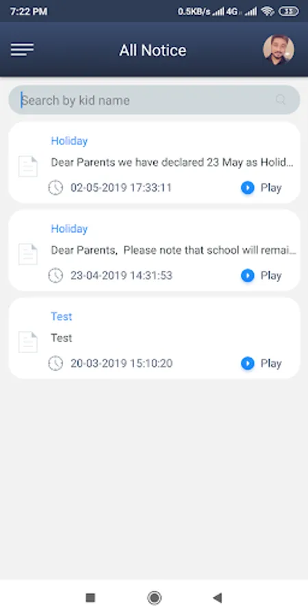 3. The Notices published by the school can be received within no time and there is a Play facility also where the notices will be converted to voice for your ease.