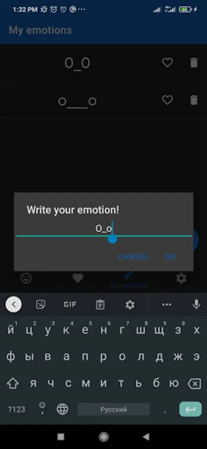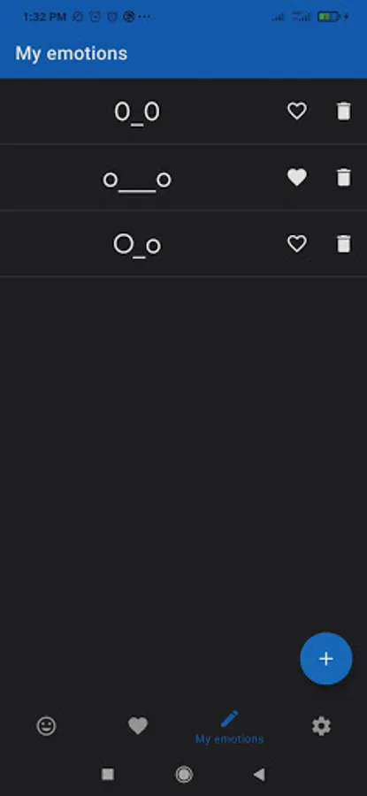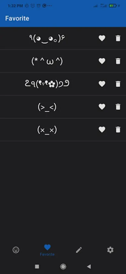 The application contains many emoticons. See, add best to favorite, add your own and use them!