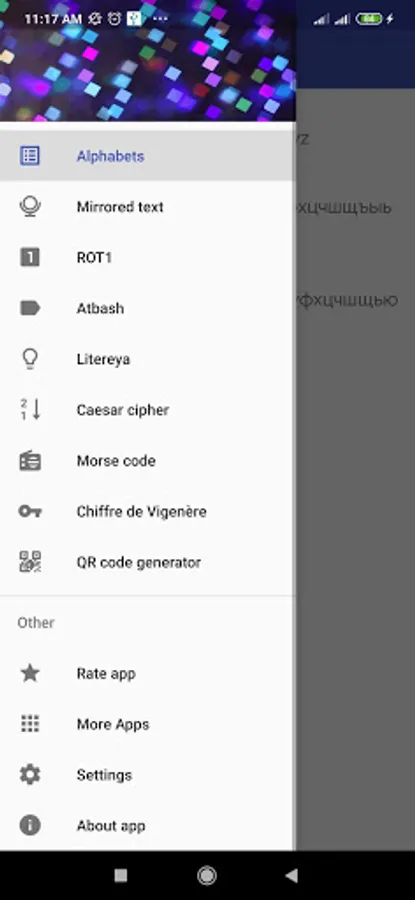 Encrypting text using known ciphers, such as Caesar's code, Morse code or QR code generation