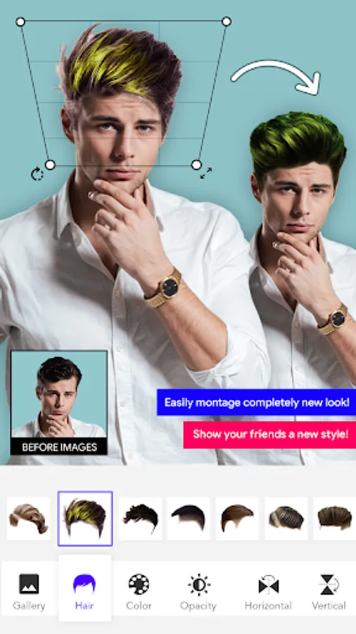 -> You can set opacity Man Hair with scaling option in your Man Hairstyle photo