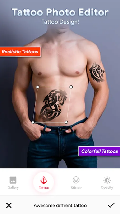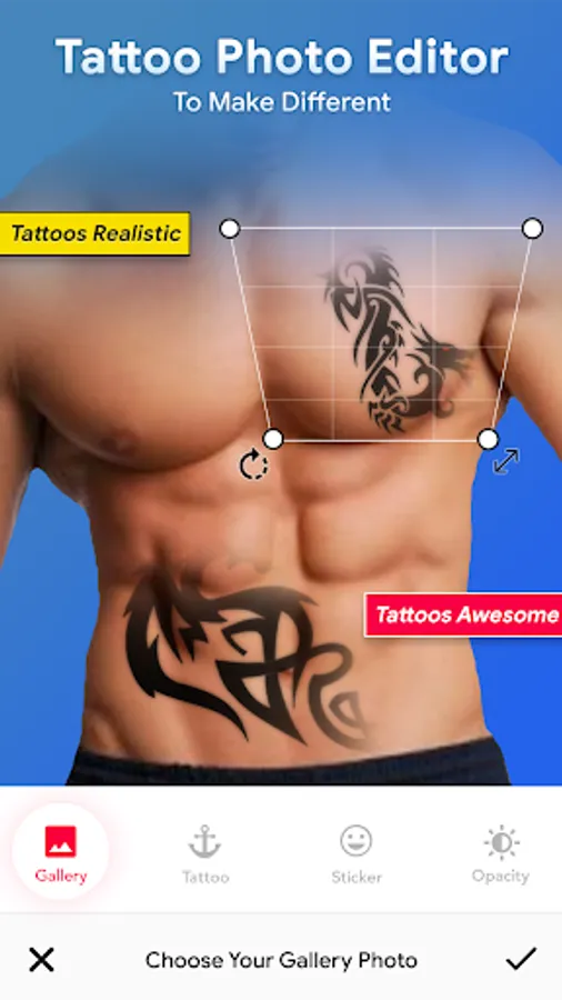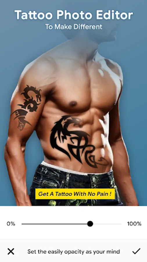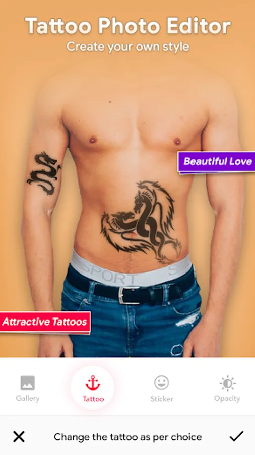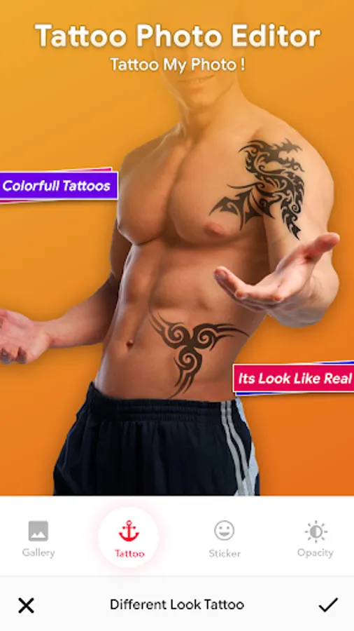 Tattoo Editor is the creative way to make a cool tattoo on photo of you. It is the best way to show your body with tattoo patterns.