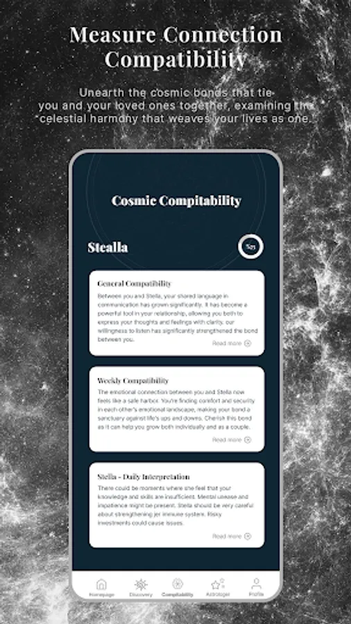 Add celestial connections, birth chart analyses showing the character of the people you are curious about, and see the physical & mental cosmic relationship compatibility between you. If you wish, you can also read the astrology interpretations of your lover, spouse, child or anyone you wish, and learn the characteristics of your loved ones from Astopia, interpreted by experts and astrologers.