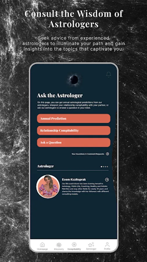 Ask questions to real astrologers to get tailored answers to your specific questions, giving you access to personalised guidance and expert advice on your mystical journey. What can you ask?