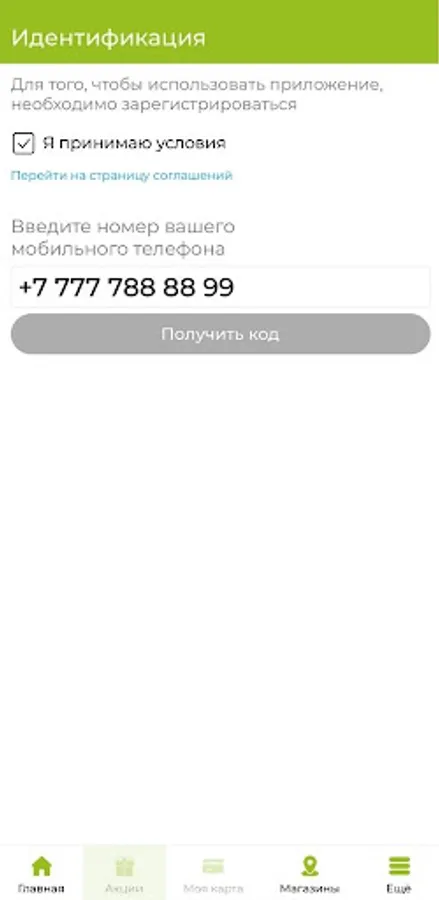 2. Enter a mobile phone number (if you have a GRAMAD bonus card, you must specify the mobile phone number indicated earlier in the registration form);