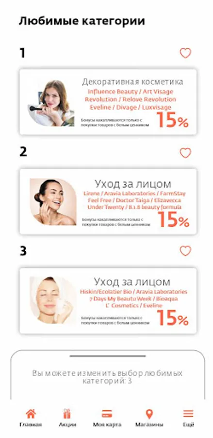 Every month, choose new favorite categories from the list and get even more benefits from their purchases!
